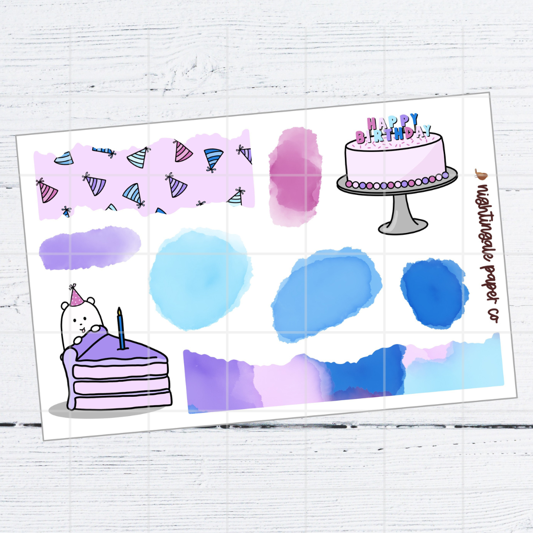 This listing is for the birthday Winston journal kit! It features large deco, watercolor swatches, and plenty of fun items to help you create the perfect spread!