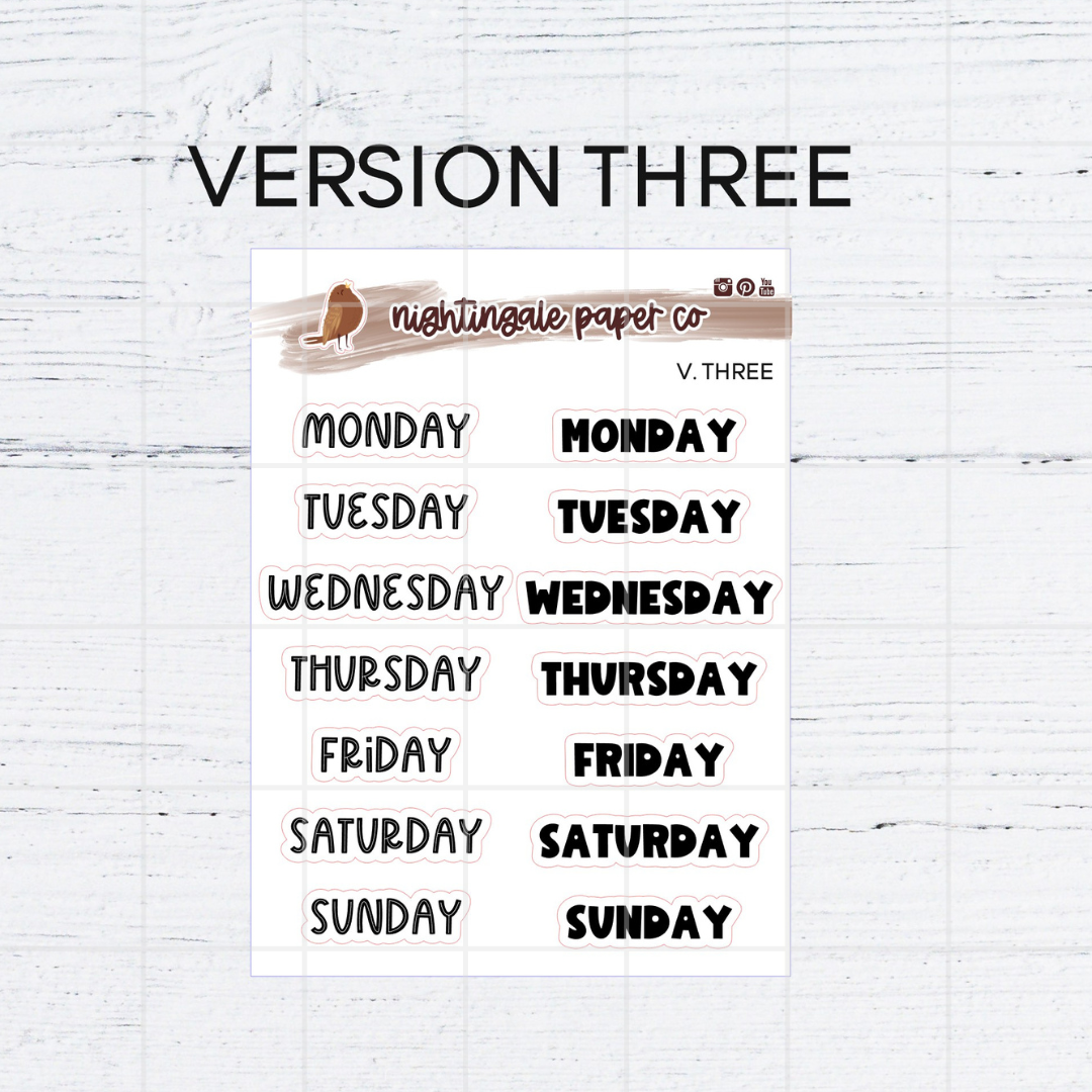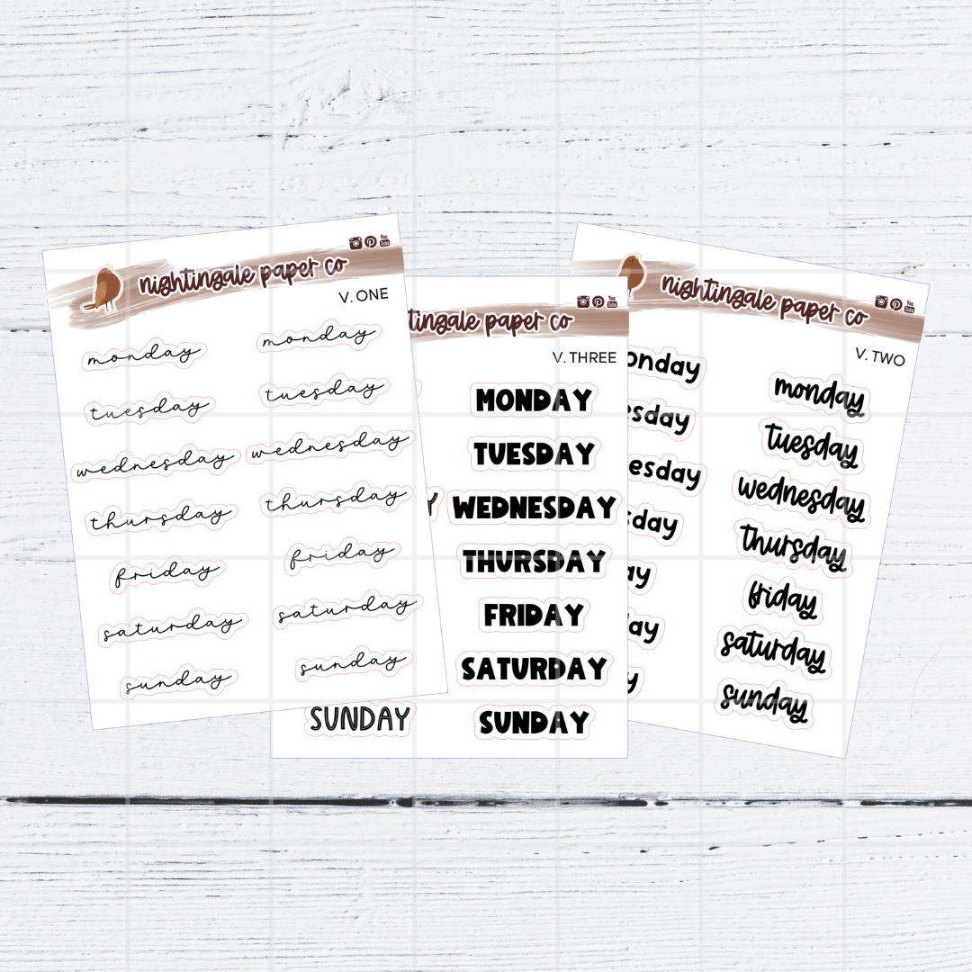 This listing is for ONE sheet of CLEAR days of the week stickers! Choose from three different versions.